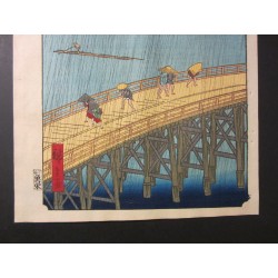 Averse sur le pont Shin-Ōhashi à Atake