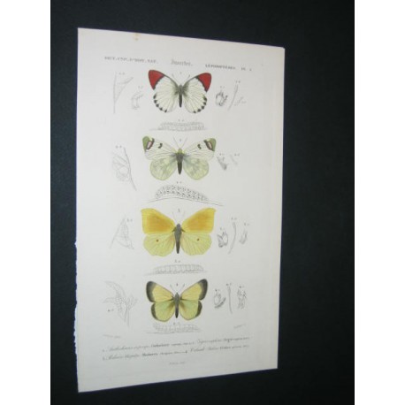 Dictionnaire d'histoire naturelle: Anthocharis, Zégris, Rodocère et Coliade.(butterfly) Nice antique print from 1861, hand-colored at the time.