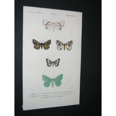 Dictionnaire d'histoire naturelle: Phalène,Géomètre, Fidonie, Zérène et Melanippe.(butterfly) Nice antique print from 1861, hand-colored at the time. Some small fox marks.